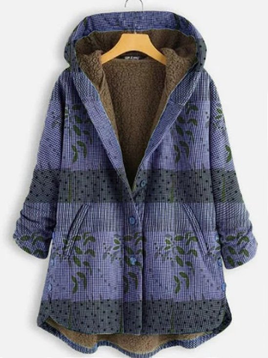 Women Plaid Fleece Hooded Zipper Autumn Winter Coat