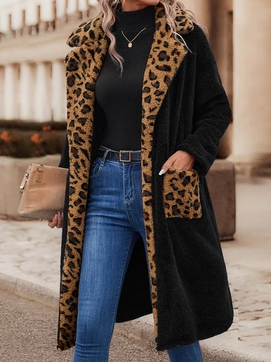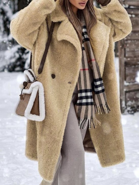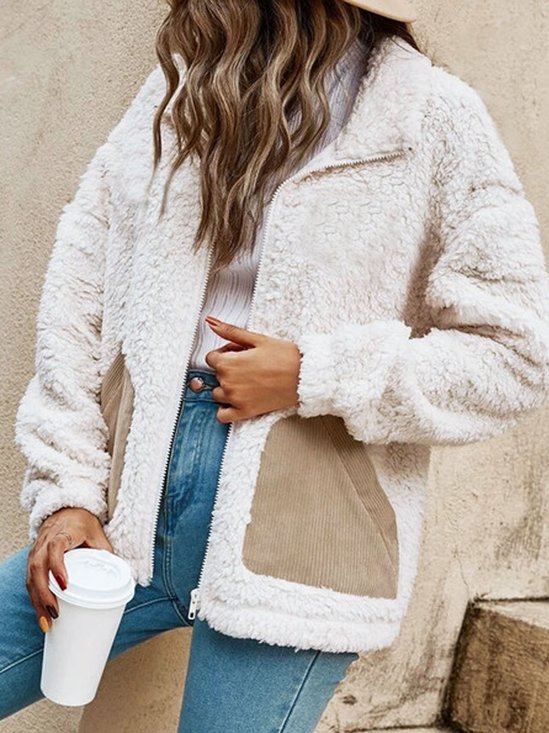 Casual Plain Shawl Collar Long sleeve Teddy Jacket