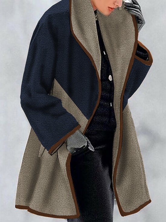 Shawl Collar Color Block Loose Fluff/Granular Fleece Fabric Teddy Jacket